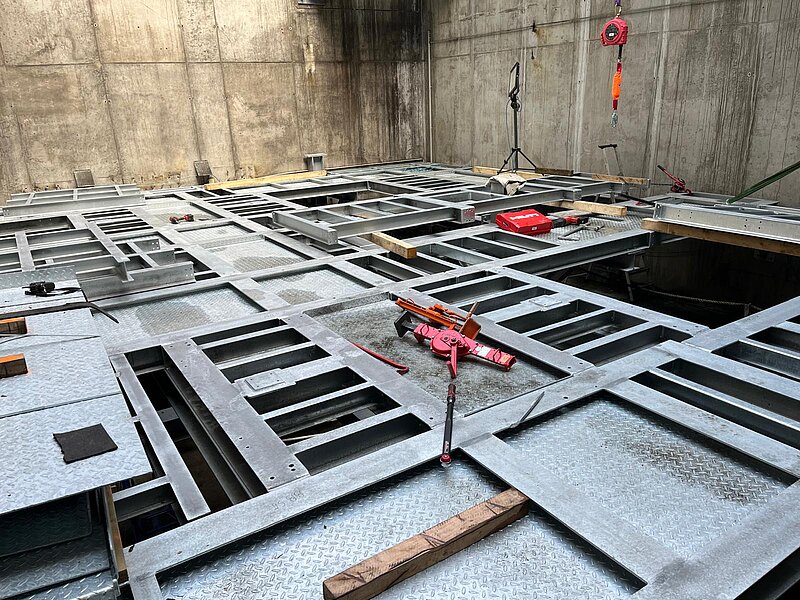 In nur 6 Tagen entstanden zwei Stahlkonstruktionen in zwei Schächten einer rund 14 Meter, der andere sogar 18,5 Meter hoch. Beide Schächte waren durch einen unterirdischen Tunnel verbunden und lagen etwa 100 Meter auseinander. Die Arbeiten fanden unter extrem beengten Platzverhältnissen und mit strenger Zeitvorgabe statt.